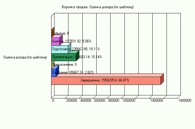 Рис. 3. «Воронка продаж: оценка дохода» позволяет руководителю компании провести оперативную оценку потенциального дохода от продаж на основе шаблона и сравнить его с данными прогноза основанном на статистических данных CRM-системы. - Проблема: Требуется оперативный план-фактный анализ и сравнительный анализ текущих продаж.