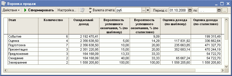 Решение: Чтобы руководитель видел не только фактический результат продаж прошедшего периода, но и мог корректировать работу каждого сотрудника/подразделения/компании в целом, он должен иметь возможность видеть прогноз продаж («воронку продаж») по компании в целом. На основе данной информации, при необходимости, руководитель может принять корректирующие действия.